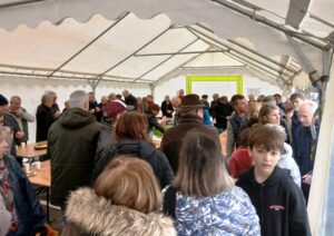 L’affiche apposée , sous le chapiteau,  n’a pas manqué de faire sourire les fidèles et pèlerins de 2026,